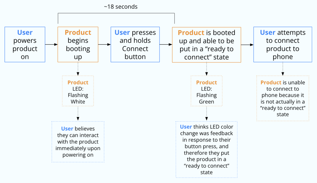 1. Participants were not expecting to have to wait for the product to “boot up” before interacting with it, and therefore were pressing the Connect button too soon.
